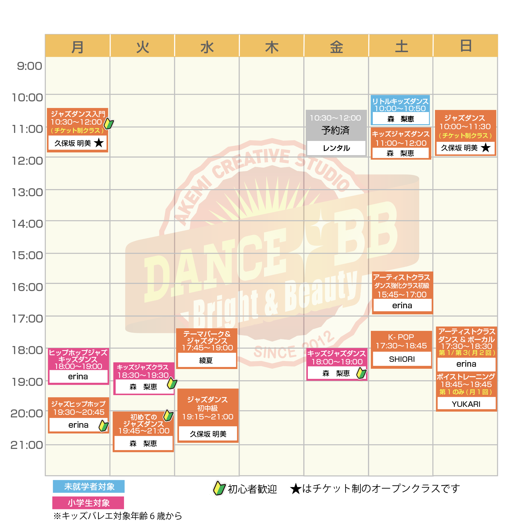 ◆月、日曜日のジャズダンスはチケット制です。(2ヶ月有効)